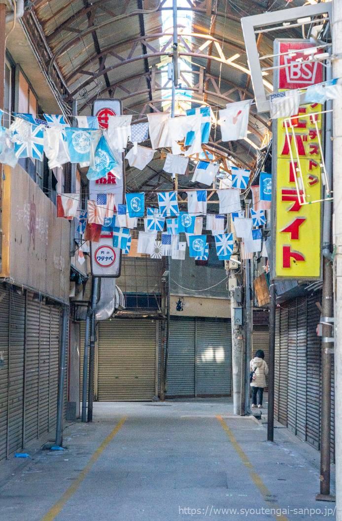 昭和の香りを色濃く残すアーケードには、色鮮やかな万国旗が吊るされており、商店街マニアの間では「昭和レトロの聖地」として非常に有名です。