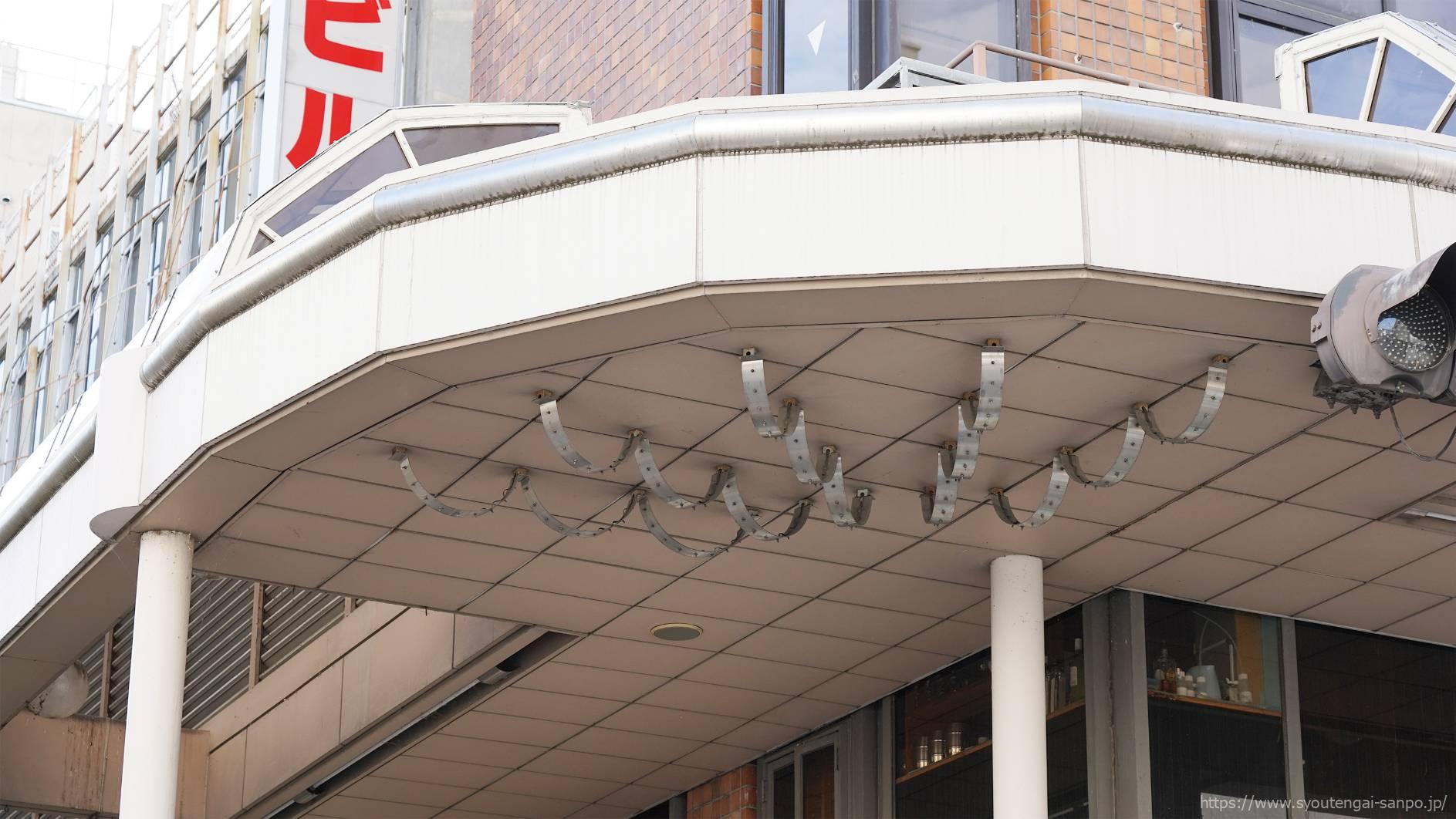 曲がりくねった珍しい形のアーケード屋根が特徴の通り。