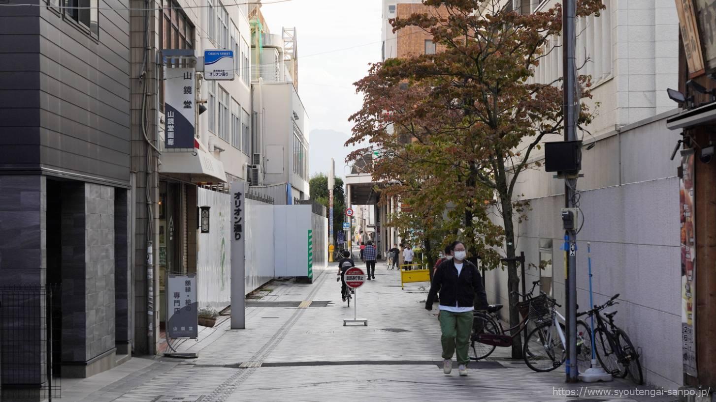 かつてあった洋画専門館「オリオンパレス」が名前の由来となっている、甲府を代表するアーケード街。
