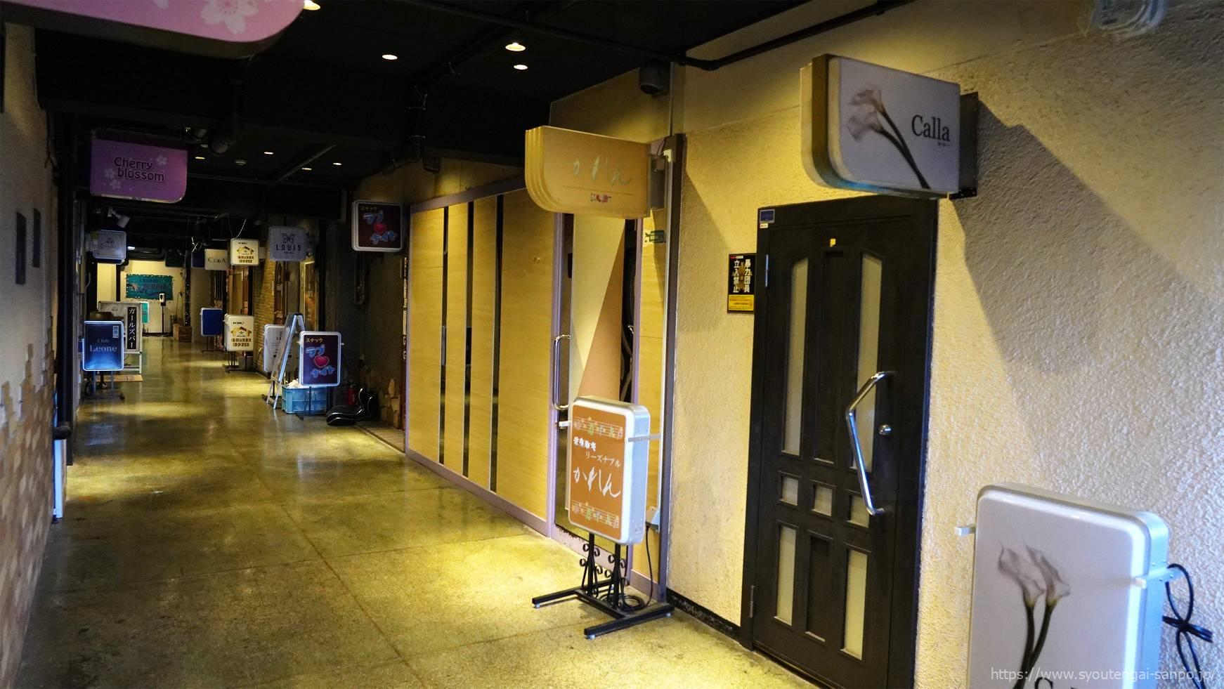 表通りから一歩入った場所にある、隠れ家的な雰囲気が魅力の飲食店街。