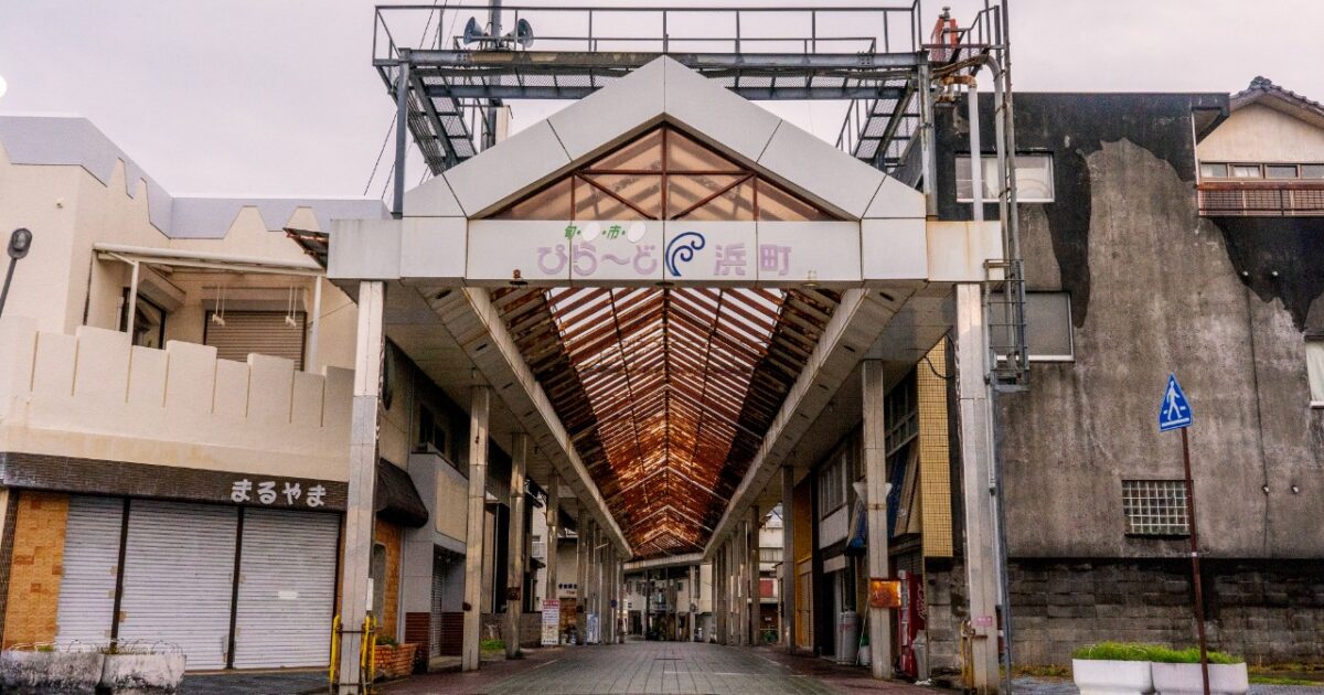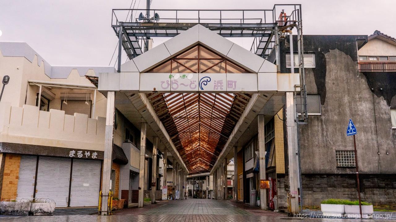 「ぴらーど浜町」とかかれた白いアーチ