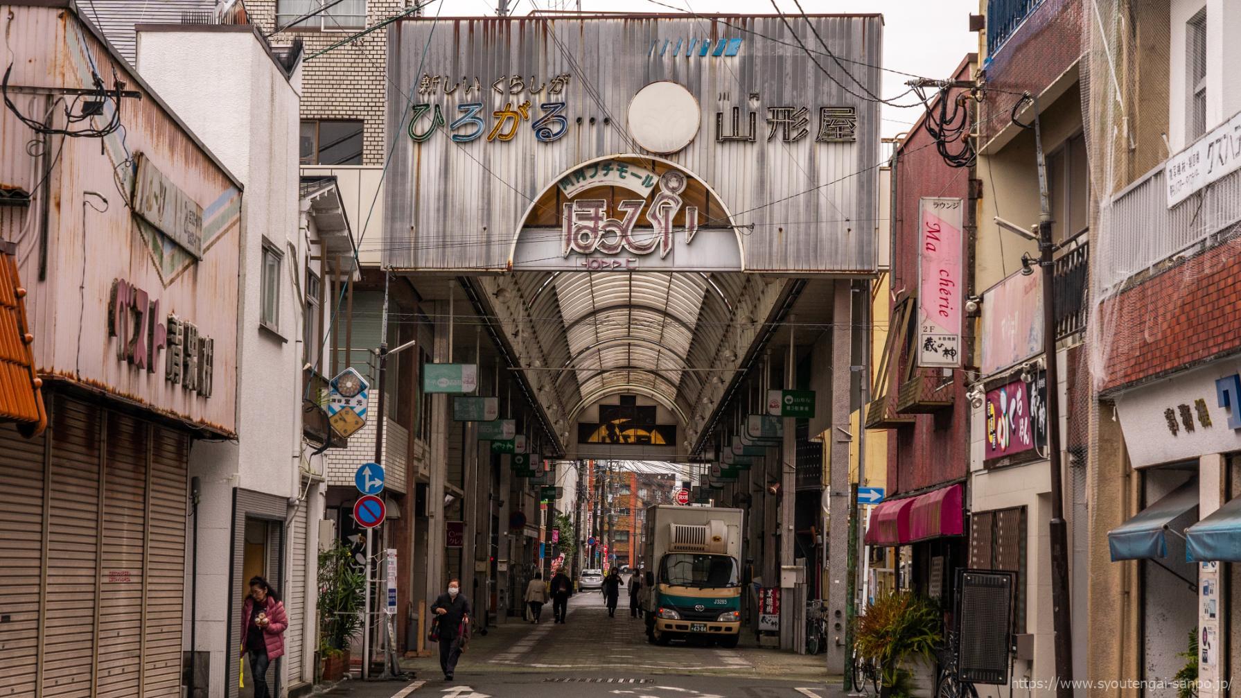 国道3号から1本奥に入るとこの素敵なアーケード商店街があります。