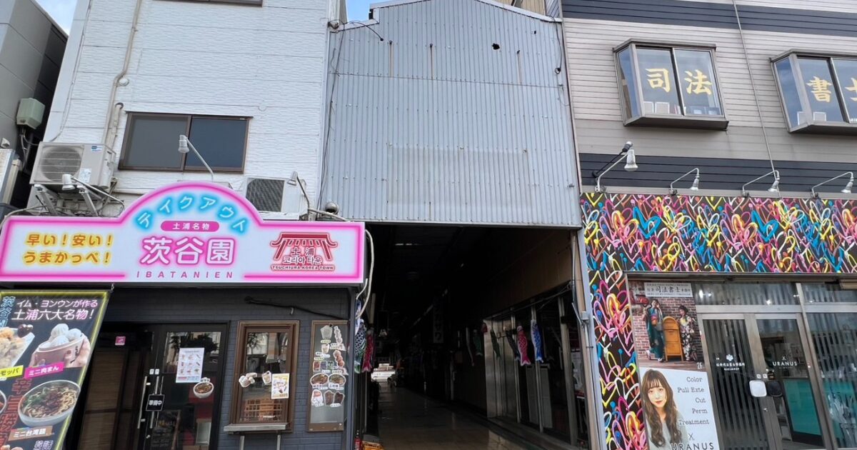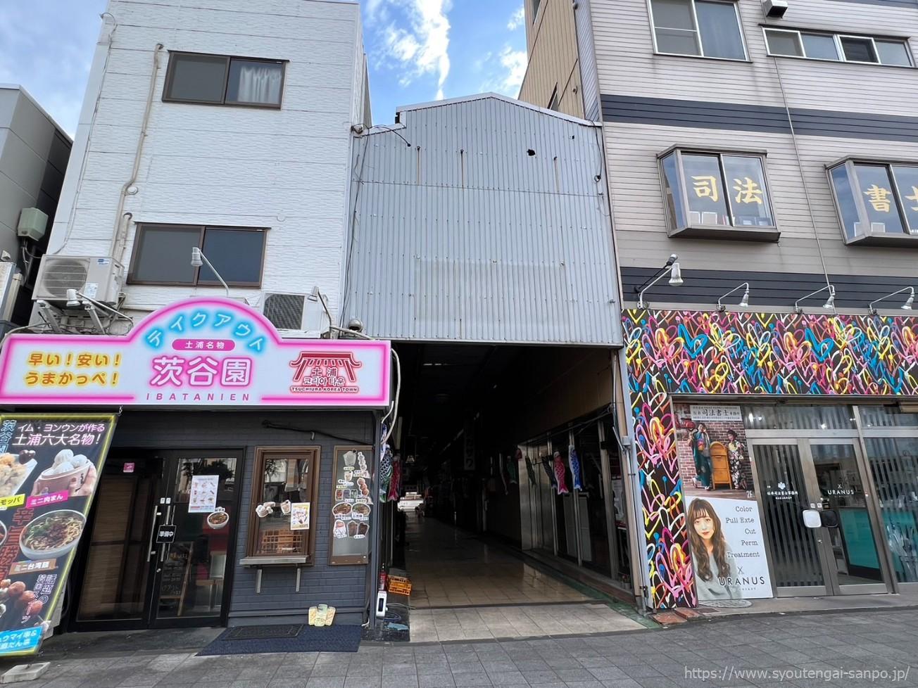 JR土浦駅から徒歩10分弱の場所にあるアーケード街。