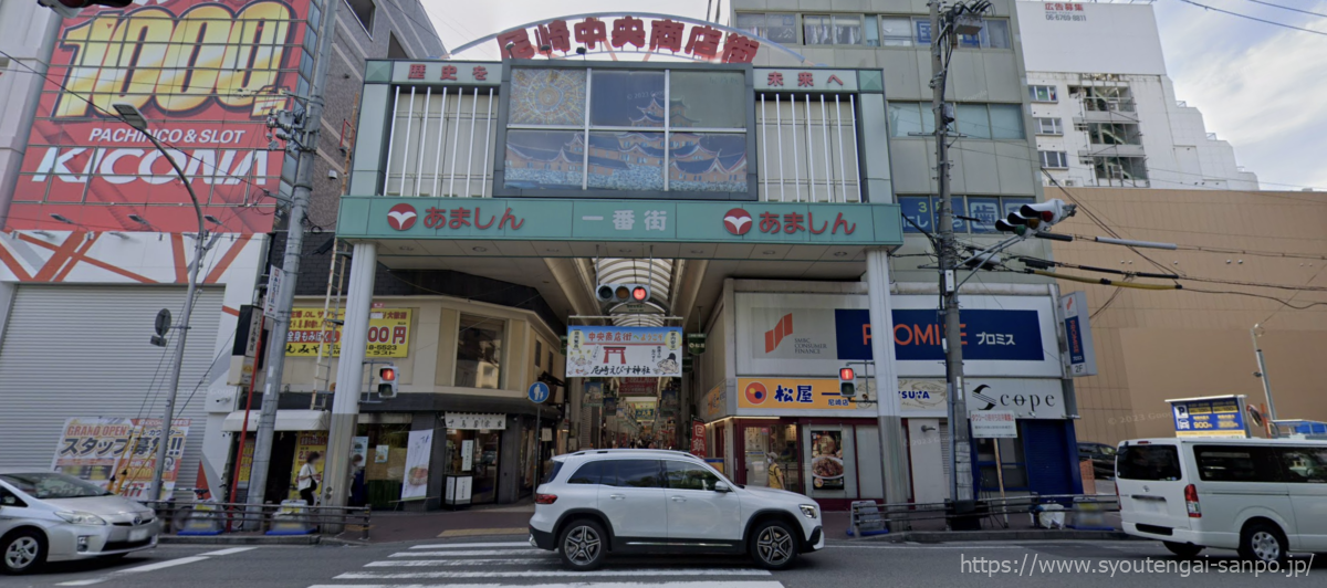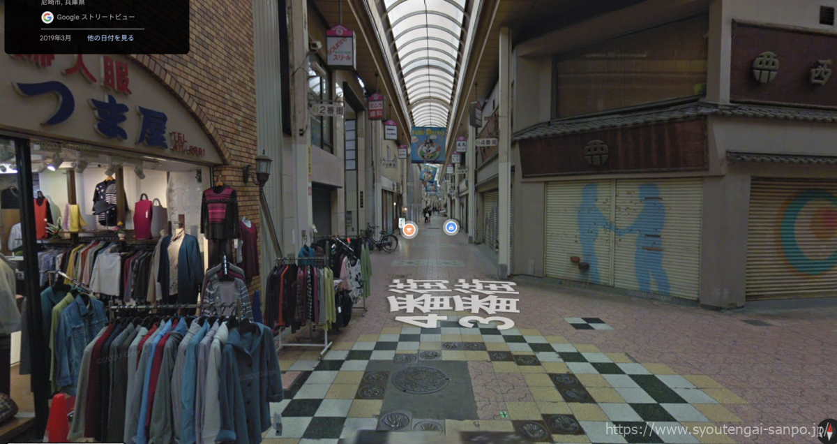 ↓歩いて尼崎駅へアーケードが続く、徒歩10分