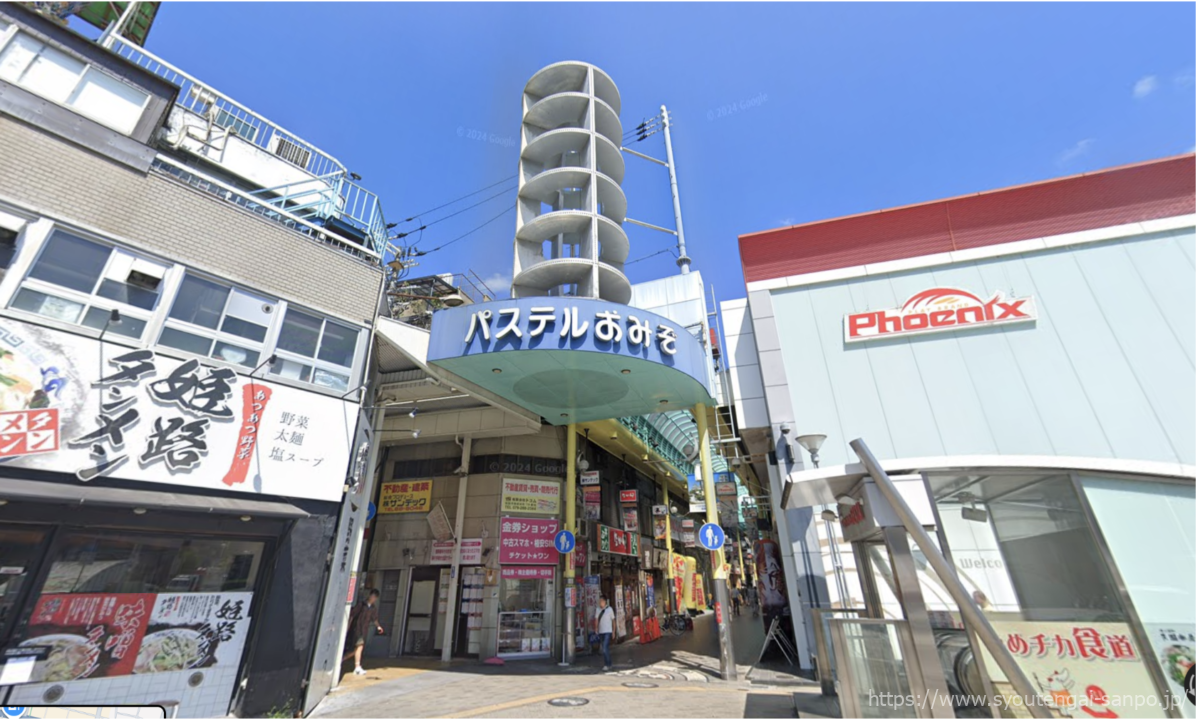 駅から商店街まで徒歩1分、15分もあれば完了できそう