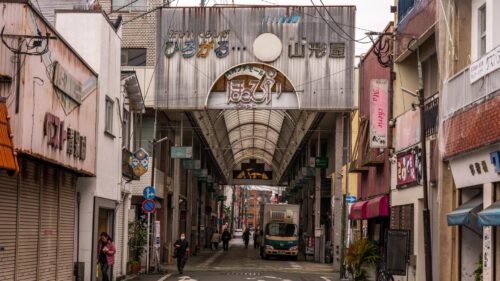 川内プチモールほっぴい。アーチが特徴的!河童の街にある廃れゆくアーケード商店街。鹿児島県薩摩川内市西向田町。