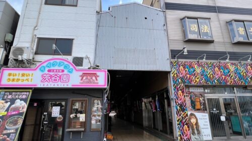 上電横丁商店街。側面アパートが特徴的なレトロ商店街。群馬県前橋市城東町。