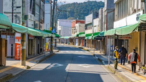 備中高梁の商店街。備中松山城を背に、田舎の商店街風景。日本各地の商店街を紹介、日々商店街の魅力を発信しています。